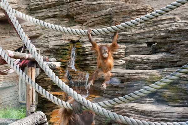 Обезьян-малыш. Был очень смешной. Хватался за канаты ногами, а руками рвал траву и ел.