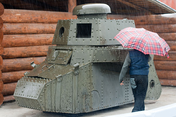 А, кстати, и более древний танк тоже есть. Времен первой мировой. Забавный такой. Рядом Динь для сравнения размеров танка.