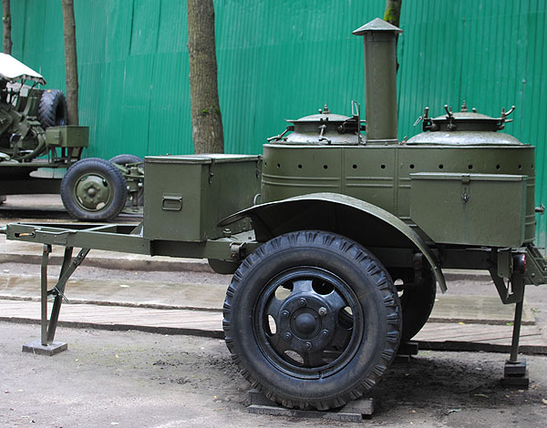 Кроме боевой техники, есть другая. Например, приспособы для передвижной полевой кухни. Причем, их тоже можно опробовать: предлагают настоящий военный шашлык, кашу с тушенкой, чай. Все это по крайней мере накладывают из древних этих приспособ. Говорят, что и готовят так же.