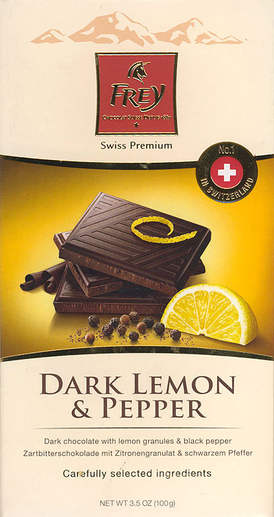 С лимонной цедрой и перцем. Перец не чувствуется. Но шоколад вкусный.