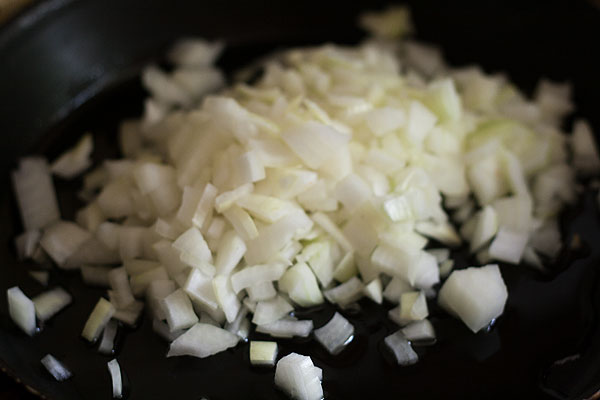 Большую луковицу режем мелко. На сковородку наливаем ложку масла.
