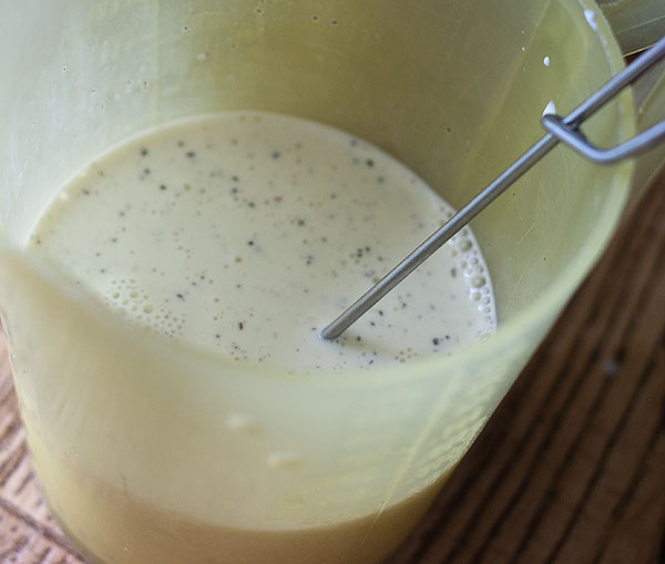 Делаем заливку. В заливку я взяла оставшийся от теста белок + 2 яйца + 200 грамм сливок + ложка соли + щепотка перца.