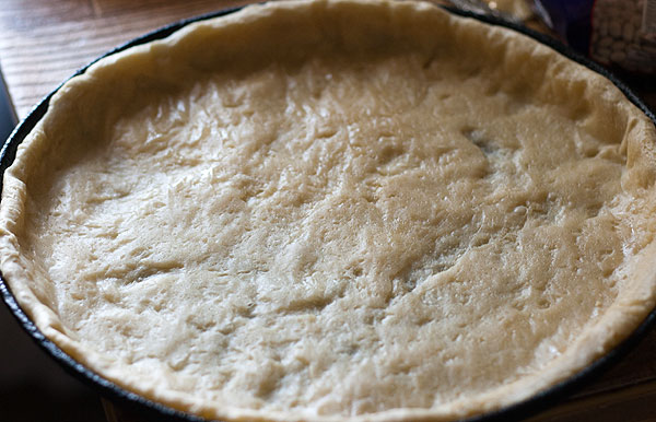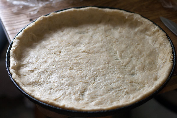 В рецепте пишут, что тесто надо раскатать, но я просто размяла-разложила тесто по сковородке и распределила руками.