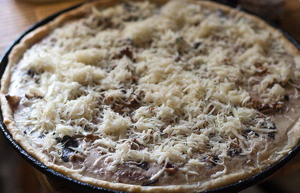 Пирог получился вкусный. Не скажу, что нереально вкусно. Но реально вкусно )) И готовить оказалось на удивление легко. В следующий раз думаю взять какой-нибудь сыр с более ярко-выраженным вкусом, чуть меньше грибов и чуть больше орехов. А еще хочется теперь поделать разные тарты. Раньше я как-то стеснялась вот этого вот предварительного запекания теста без начинки.