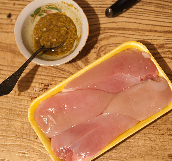 Мы довольно часто стали вяленое мясо делать. Свинину, говядину. Говядина получается потверже, свинина быстрее готова в употребление. А тут решили примерно так же сделать и куриную грудку. Сделать смесь: 3 ст.л. морской соли + смесь перцев 2 ч.л. + сухой чеснок 1 ч.л. + немного коньяка (опционально, а можно заменить на другой крепкий алкоголь, который даст аромат (т.е. на водку заменять нет смысла!)) примерно 2-3 ст.л.
