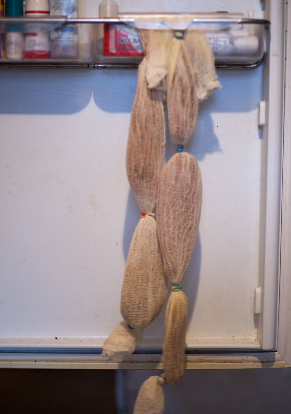 Сухую грудку завернуть в марлю, концы марли скрепить, повесить марлю в холодильнике.