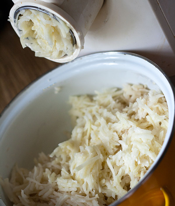 Вобще-то эта картинка меня вдохновила. И я пошла жарить драники. Для драников я всегда картошку “тру” на мясорубке (она у меня с функцией терки, я этой функцией даже чаще пользуюсь, чем собственно мясорубкой).