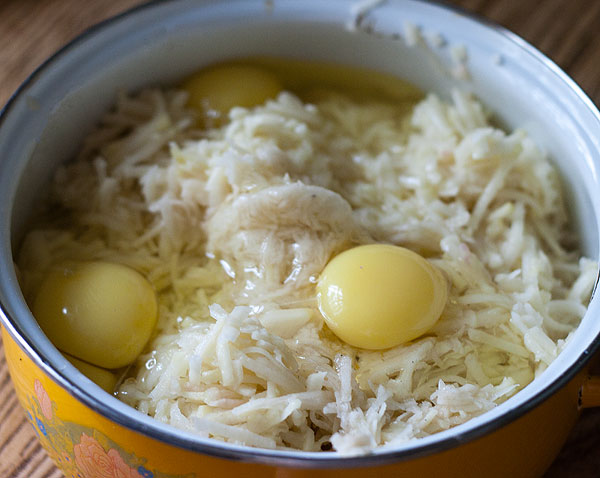 А если картошка долго стоит без яиц, она темнеет у меня. Первые драники, кстати, когда еще сок не утек – самые вкусные. ))