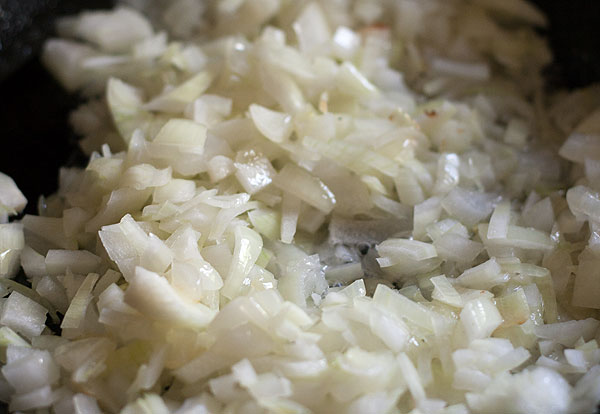 Луковицу порезать. Не обязательно, чтобы мелко. Обжарить до прозрачности/ легкой золотистости.