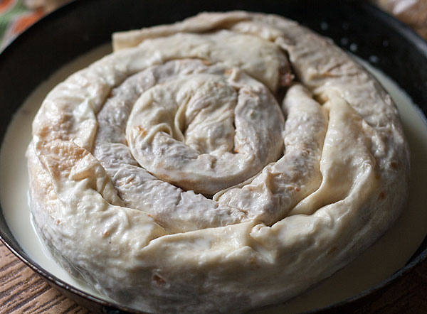 Оставить на столе, чтобы лаваш промок. Как заливкой с одной стороны, так и мясом с другой. Поскольку у меня поливка разлилась вокруг, я черпала вылившуюся заливку ложкой и поливала сверху. Но, по-моему, это было лишнее. Хотя заливка тут очень в тему. Она все скрепляет и делает красивым-прекрасивым. Запихиваем в горячую духовку. Периодически посматриваем, пока цвет вас не удовлетворит. У меня ушло 25 минут.