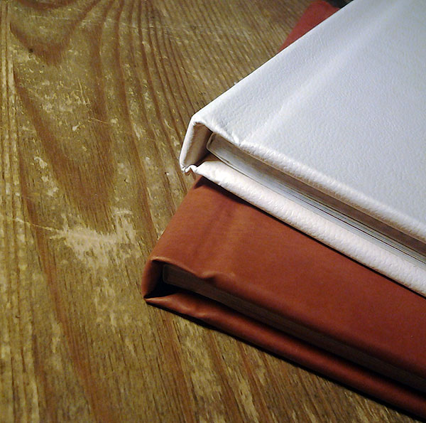 Качество биговки – хорошее. Книжка аккуратная. Коричневая снизу – прошлогодняя, детсадовская. Белая сверху – новенькая. Белая (чуть кремовая) мне больше нравится по цвету, но коричневый материал был приятнее на ощупь.