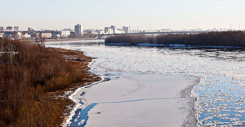В Омске вобще-то наступила зима. Зима какая-то странная. Снега выпало 2 грамма и видно, что он уже не тает, лежит. Но поскольку его 2 грамма, зимы в воздухе не чувствуется, все дороги сухие. Кое-где виднеется еще зеленая трава. А вот Иртыш вполне себе зимний.