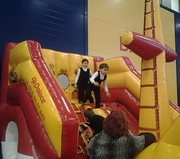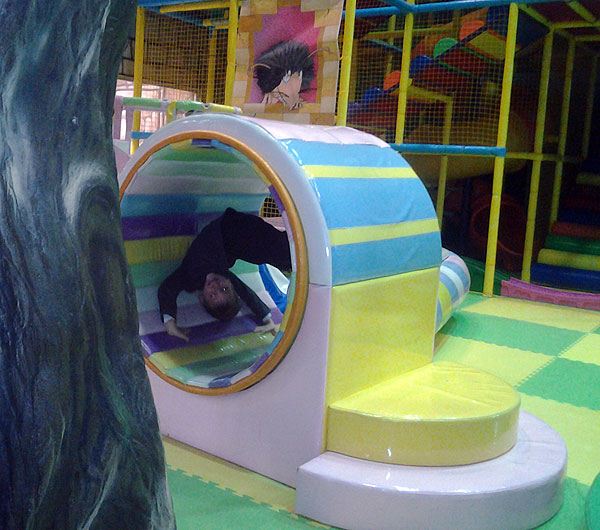Детская комната оказалась очень богатая: там и кривые зеркала, и батуты, и лазилки, и горки-трубы, и карусельки и т.д.