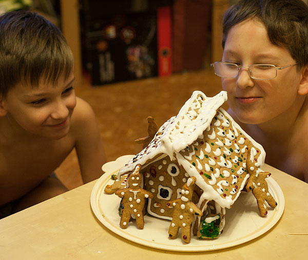 И самое забавное блюдо этого года (и единственное новое для нас, остальные проверенные) Пряничный домик Пряничный домик, как я думала, дело какое-то неподъемное. А потом купила вот такую вот игрушку в ИКЕЕ -- и деваться было некуда, пришлось печь.