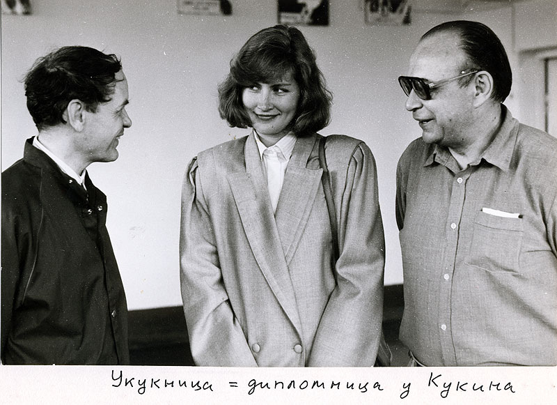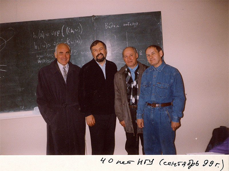 А вот и другое фото, на котором папа, Терентьев и еще не знаю, кто, но точно не Ален Делон, несмотря на подпись папиной рукой под фотографией )) Мама в комментариях подсказывает, что справа на фото Андрей Николаевич Фирсов, преподаватель курса “Дифф.уравнения”.