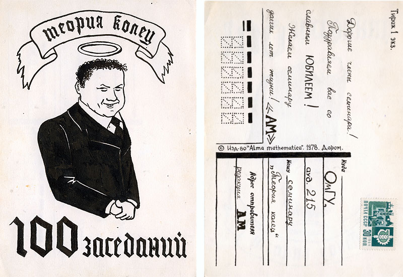 А потом мама пошла к папе писать диплом. Вобще, к папе много студентов первого набора пошли писать диплом. А еще больше студентов пошли слушать спецсеминар “Теория колец”. Спецсеминар работал не полгода, как сейчас все спецкурсы, а больше двух лет! Поэтому было, например, сотое заседание семинара, торжественное.