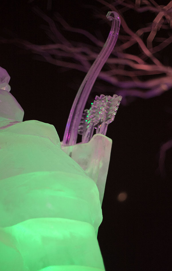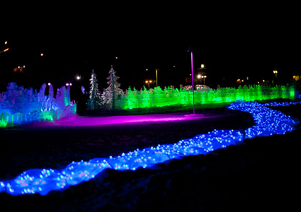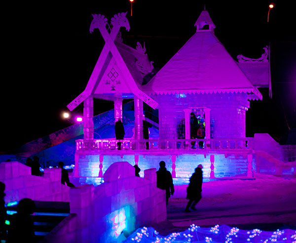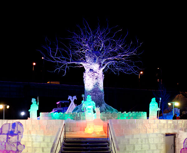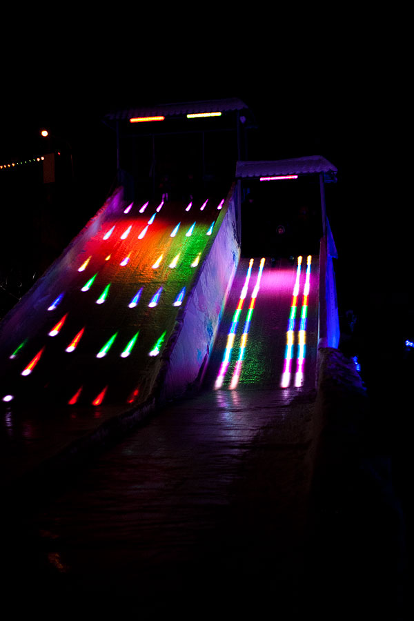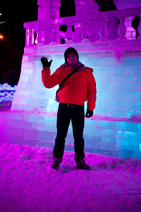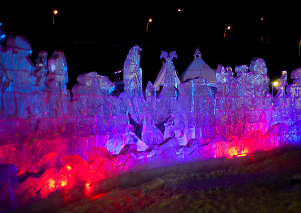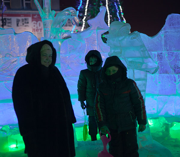 Ночью в городке очень красиво, но фотографировать трудно. Хотя я и в прошлый раз жаловалась, что ледяные скульптуры фотографировать трудно.