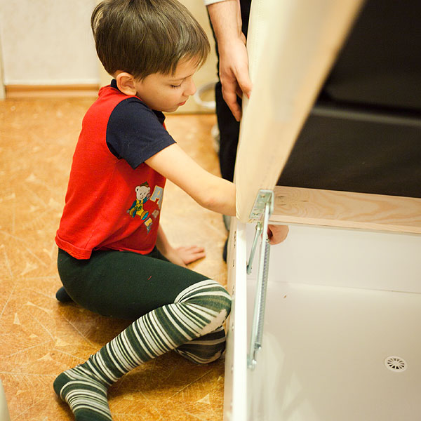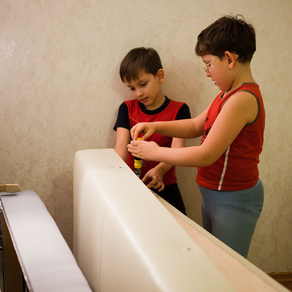 Я не скажу, что диван смогли бы дети собрать без помощи взрослых. Не смогли бы, скорее всего. Но минимум 50% работы выполнили именно они. Это очень-очень приятно.