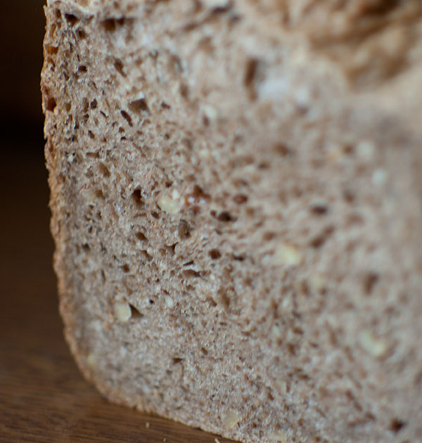 Так, о чем это я? О Фитнес-хлебе. Вот его разрез ближе. Совершенно чудесно дополняют вкус семечки подсолнуха в хлебе.