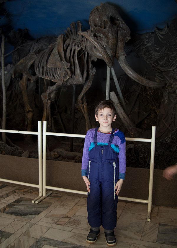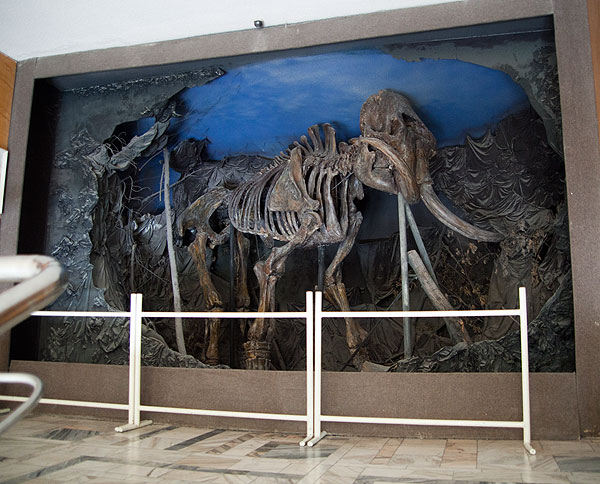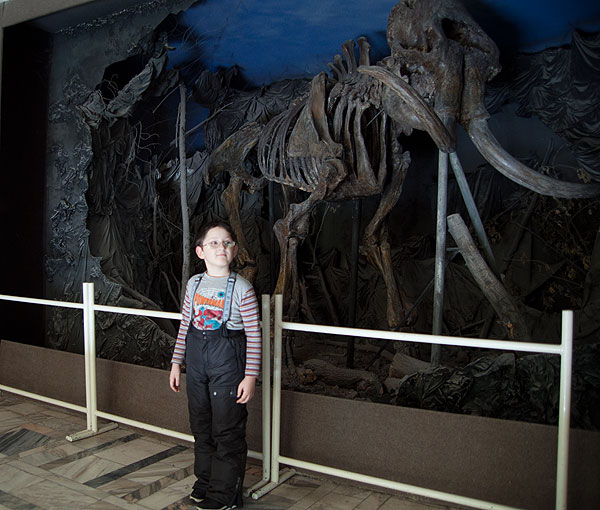 При входе – то, чем так гордится Омский Краеведческий – скелет мамонта. Мне, кстати, как раз скелет мамонта у нас очень нравится ))
