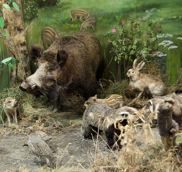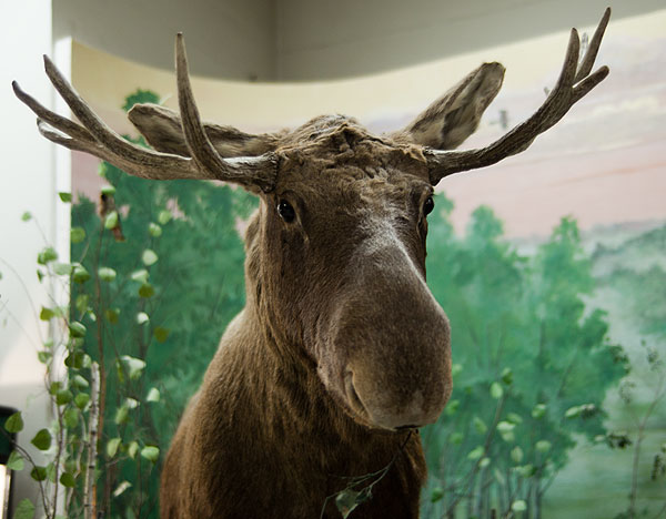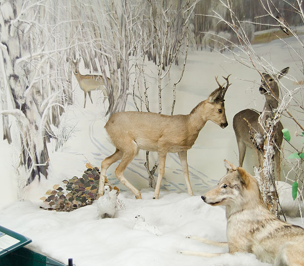 Пойдем на второй этаж, в зал “Человек и природа”. Здесь показаны чучела разных местных животных.