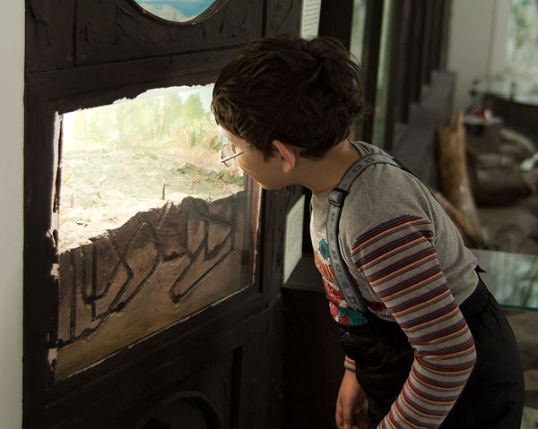 Денис смотрит на макет Омской крепости.