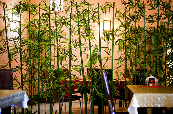 Интерьер дешевый и очень китайский. Красные большие люстры, которые никто не зажигает, потому что они гудят, когда работают. Огромный веер на стене. И прочие приятные мелочи. Я хоть и иронизирую, но на самом деле мне нравится. ))