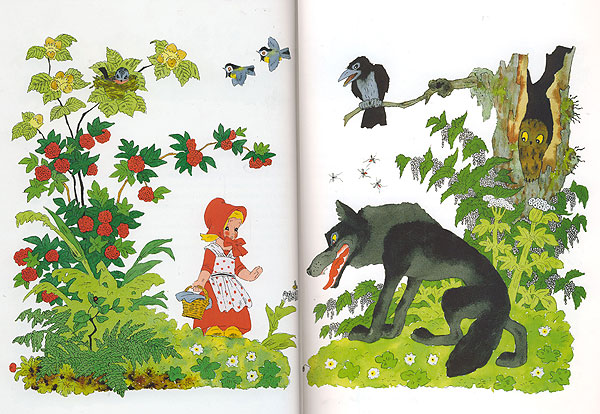 Красную шапочку раньше не видела. Чудесная совершенно. Картинка на целый разворот. Кстати, картинок на разворот много.