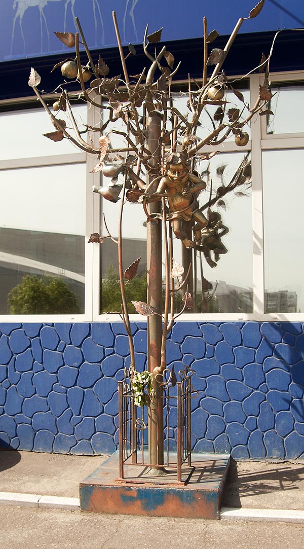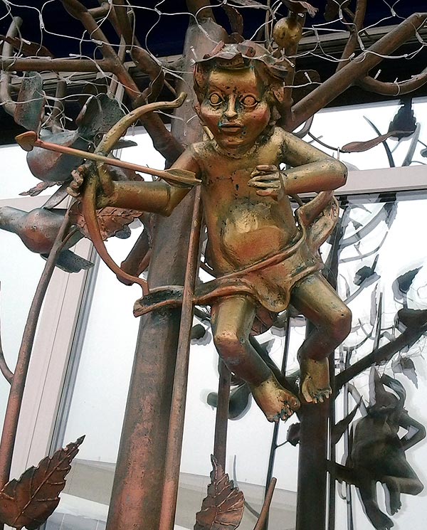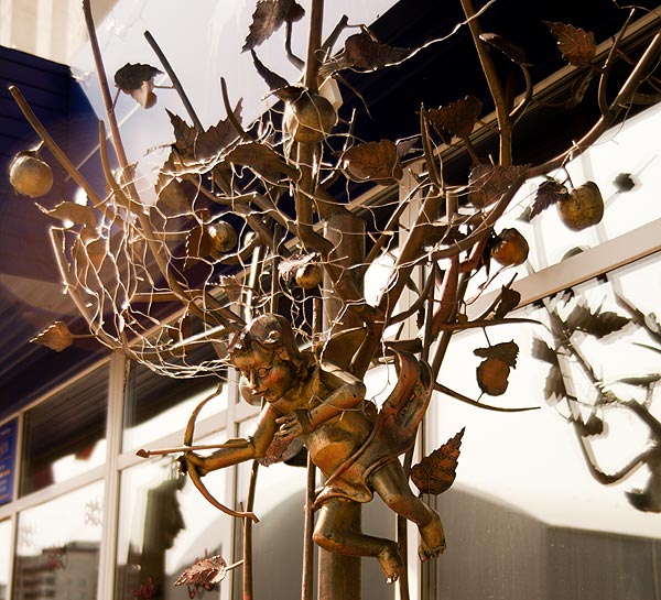 Возле ресторана Дали появилась новая скульптура. Дерево с Купидоном.
