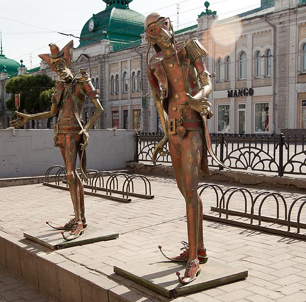 В центре города, на улице Ленина, рядом с Пропойцей и Художником буквально на днях появились Арлекины. Вроде бы, раньше они стояли внутри одного из кафе Контанелло, а сейчас вот радуют взгляд более широкому кругу омичей. Говорят опять же, что скоро их обратно уберут. Но может и не уберут, верно? А Арлекины прекрасные!
