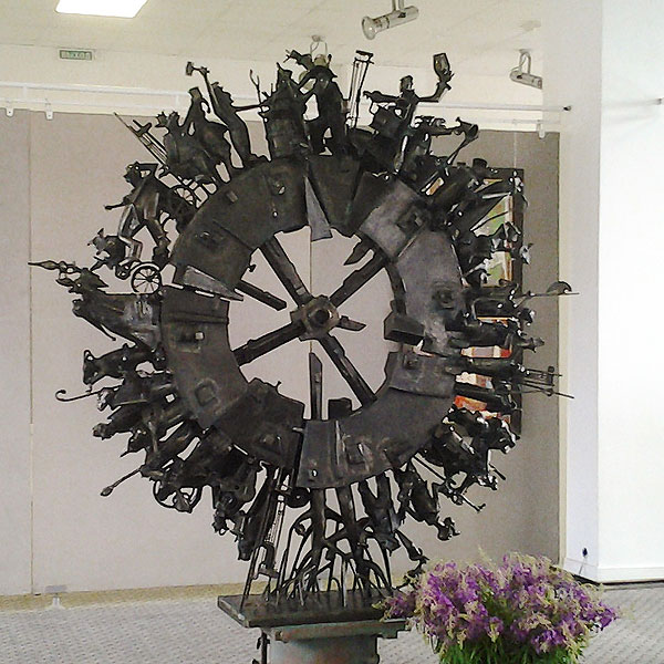 Некоторые работы очень похожи на то, что уже было. Например, вот это Колесо (написано, что 2014 года) очень похоже на то, что стояло возле Музея Омского Искусства и то, что стоит в Арлекине. Наверняка, они отличаются, но чем конкретно – надо детально сравнивать.