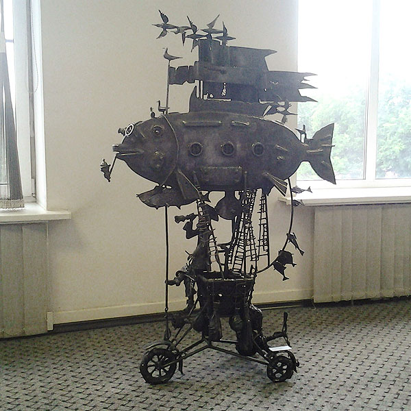 Перекликается с Коммунальным карасем и с выше показанной летающей рыбиной. Скульптура Путешественник: