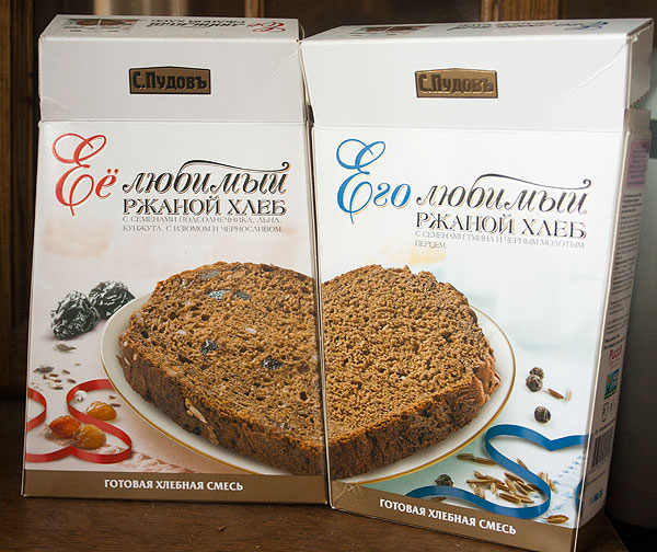 "Ее любимый" хлеб со сладковатым привкусом и сухофруктами. "Его любимый" более брутальный, без всяких сухофруктов, зато с легкой остринкой. Особенно хорош еще теплым. Очень вкусный хлеб -- изредка можно себя баловать. Мне очень понравился. Он лучше подходит для бутербродов с колбасой, к супам, ко вторым блюдам. "Его любимый ржаной" ожидание и реальность: