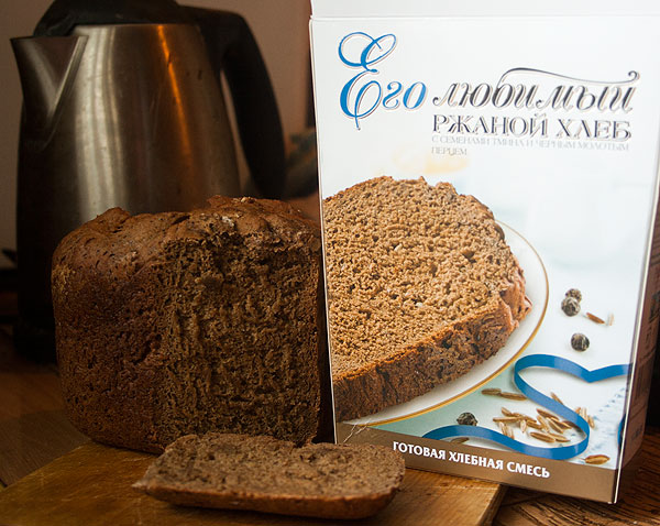 Переходим-таки к хлебам из готовых смесей. Его любимый хлеб от торговой марки С.Пудов. Я уже писала в раньше, что "Ее любимый хлеб" очень вкусный и необычный. Буквально на следующий день муж сгонял в Ленту и купил "Его любимый ржаной хлеб".