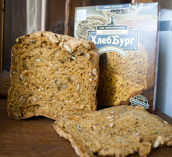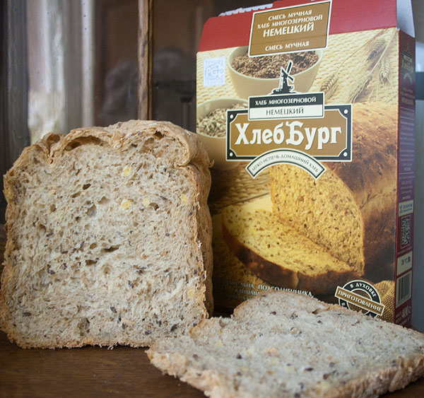 Оба хлебушка очень вкусные. По картинкам на пачке из-за странного желтого дизайна ("под старину"?) даже не могла понять, какой это хлеб: белый, серый, черный? Немецкий хлеб по вкусу (и по цвету) скорее пшеничный, белый (ничего общего с фото на упаковке). Английский хлеб по цвету буро-рыжий (неожиданно почти как на фото на упаковке), по вкусу близок к серому. Но в целом хлебушки очень похожие. Большое обилие разнообразных семечек делает их вкусными и необычными. Хлеб получился очень воздушный, пористый -- от этого еще вкуснее и очень плохо режется (надо было печь в духовке батоном -- чтобы площадь кусков была меньше )))) Когда только испекся, высокая красивая шапочка, но она сдувается и верхушка хлеба получается морщинистая. Видимо, я слишком много налила воды (на пачке написано: "добавить 230 мл воды, для хлебопечек Панасоник рекомендовано 250 мл воды" -- я добавила 250, потому что мне нравится добавлять чуть больше воды). Короче, хлеб отличный, рекомендую.
