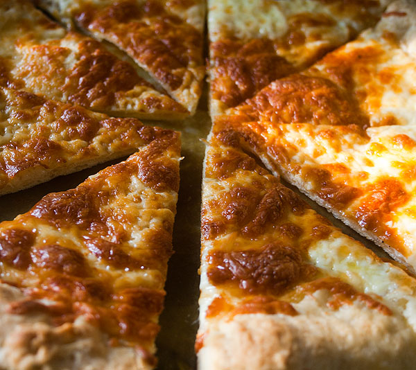 Детская любимая начинка -- много-много-много-много сыра моцарелла. Прямо много. Можно сверху положить пару кубиков сливочного масла. Как нельзя лучше сочетается с сырным бортиком, который я очень люблю делать у этой С.Пудовской пиццы. Из обычного дрожжевого теста у меня так и не выходит ровный красивый сырный бортик -- тесто рвется и даже если не порвалось, все норовит стянуться к центру. Это же тесто послушнее: его можно просто натянуть вокруг сырного валика. И тогда краешек получается очень вкусным и мягким.