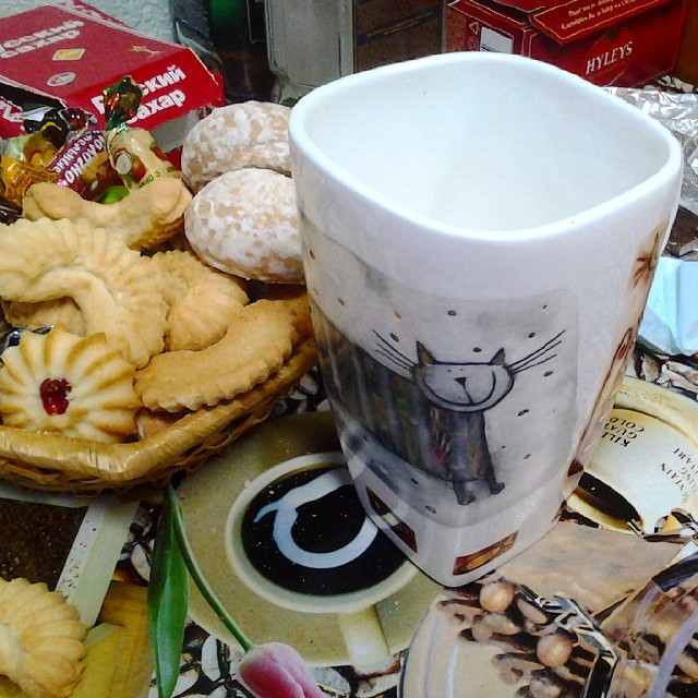 Подарок от Тайного Санты – кружка с котом. Очень правильного объема (около полулитра). И на удивление удобная.