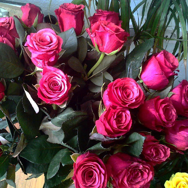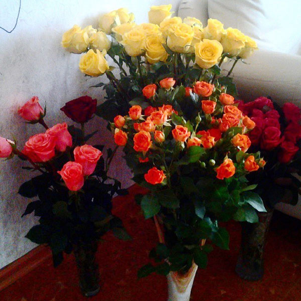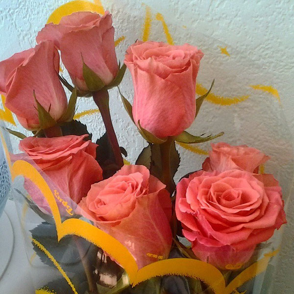 Самые первые сегодня цветы, очень нежные розовые розы от женского коллектива нашего факультета: