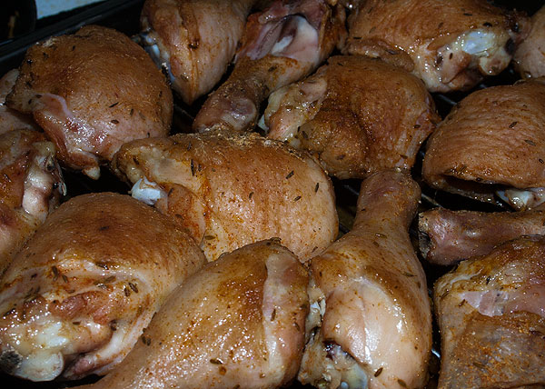 Все просто. Курячьи части смазываем смесью соли и специй как на рисунке выше. Оставляем на сутки, потом запекаем обязательно на решетке. А еще лучше -- на мангале на решетке.