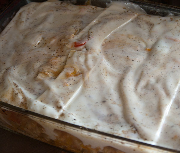 Ничего так. Ленивость заключалась в том, чтобы вместо соуса бешамель взять натуральный йогурт. В полтора раза ленивее вышло, но зато верх чуть подгорел. ( Зато Антону понравилось.