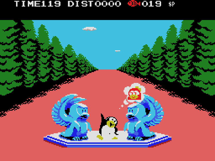 Тогда еще даже не IBM были, а Ямахи. Так что игра очень древняя и сейчас уже почти никому не известная. Суть игры в следующем: в сказочном пингвинячьем королевстве заболела принцесса. Чтобы ее вылечить, надо принести ей яблоко с чудо-дерева. В замен получишь почет и руку принцессы в придачу. Игра была непроходимая в принципе. У пингвина этого было 3 жизни. Нам добрая лаборантка компьютерного класса вводила чит на бесконечные жизни. Мы за игру помирали, как мне кажется, пару тысяч раз. Кроме того, мы проходили все и приходили к принцессе с яблоком. А принцесса уже скончалась: долго ходили. Говорят, что если прийти к принцессе часа за 2, то можно было увидеть свадьбу. У нас с Ольгой на игру уходило от 6 до 8 часов. Иногда не укладывались в это время, но мама уже домой хотела и нас забирала. Но даже не смотря на перманентно умирающую принцессу, игра была прекрасная!