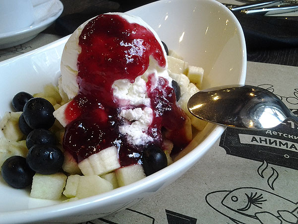(Десерт с мороженным тоже, кстати, принесли не дождавшись, пока я съем второе – нельзя же так!)