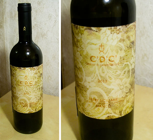 Вино географического наименования белое сухое. Урожай 2013 года. Сорта винограда: Грилло, Инсолия, Шардонне, Катаратто. Италия, регион Сицилия. Содержание алкоголя и сахара на бутылке не нашла. Стоимость в магазине "Винные погреба" 1400 рублей.