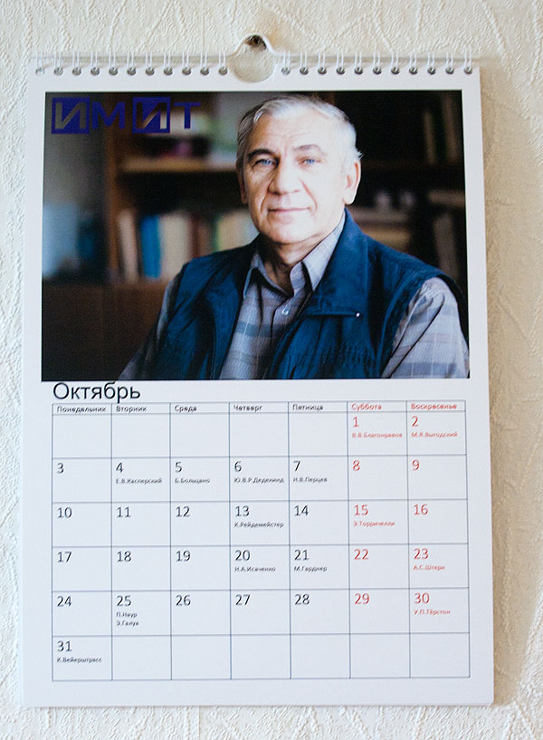 Календари получились хорошие. Забавно слушать отзывы студентов: Четверокурсники: – Ой, наконец-то первый календарь, где все люди известные! Второкурсники: – А, понятно, что всех самых знаменитых включили в прошлый год, поэтому мы никого в этом календаре не знаем! Четверокурсницы: – ой, я открою на мае и так пусть и висит весь год! Я его обожаю! (календарь в этом году с преподавателями-мужчинами).