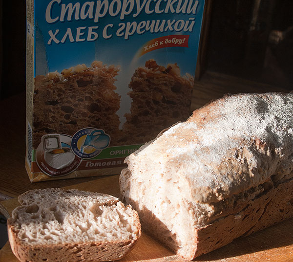 Старорусский хлеб с гречихой. Я очень люблю этот хлеб. Вот просто очень. Мне кажется, все в нем идеально – ни больше, ни меньше. Антон точно такой же пылкой любовью любит “Москвоский”. А я вот этот. Нашла его в Омске в свободной продаже в Триумфе.