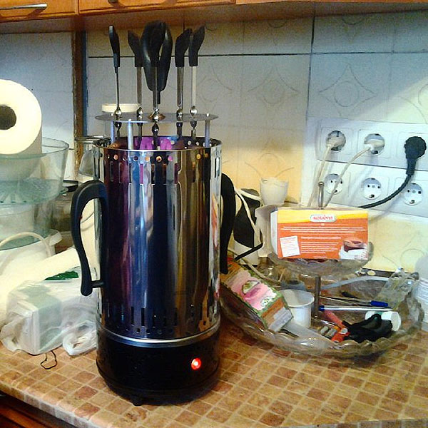 Сразу для кулинарных гаджето-манов (как я). Шашлычница – вещь вполне дельная! Шашлыки из нее получаются по вкусу очень хорошие, сильно похожие на жареные на мангале. Разве что к шашлыкам, приготовленным на мангале, прибавляется аппетит, нагулянный за 5-6 часов их ожидания на свежем воздухе.