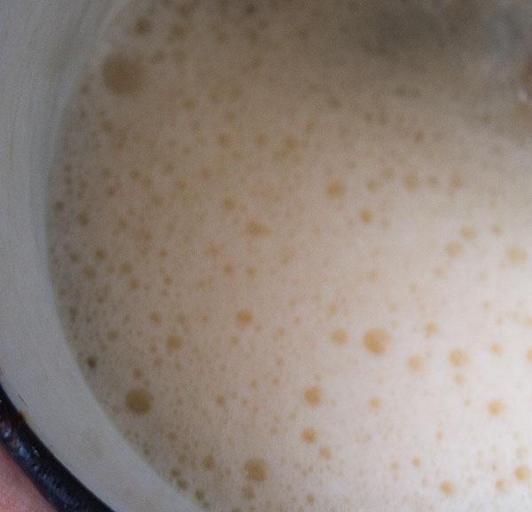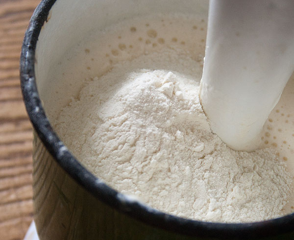 Добавляем стакан (200 грамм) прокисшего молока (или любой кисломолочки). Получается так красиво и пышно!