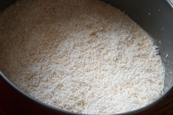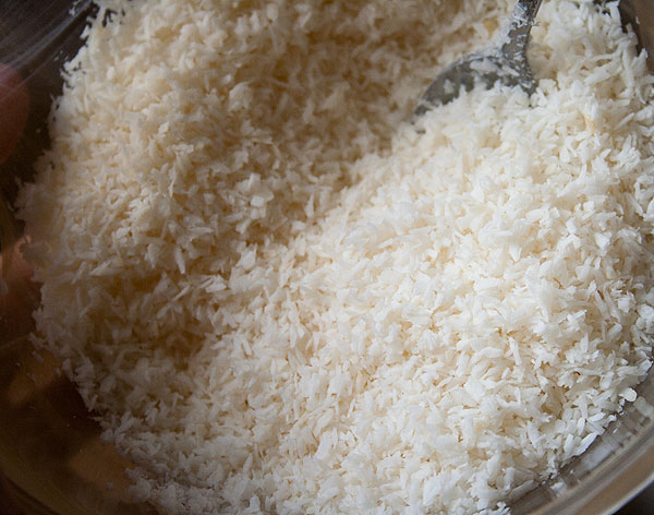 120 грамм кокосовой стружки смешиваем с полстакана сахара.