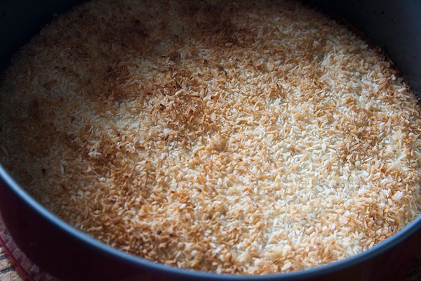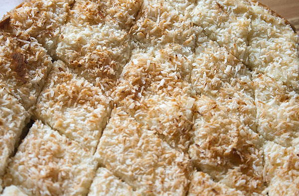 Во Вьетнаме в отеле на завтрак подавали на десерт примерно пять разных пирогов на выбор. Пироги в целом были так себе. Но один – обалденный. Кокосовый. Поэтому еще во второй день отдыха было решено, что по приезду домой надо обязательно напечь кокосовый пирог. За неделю – 3 раза испекла. Так что пора делиться рецептом.