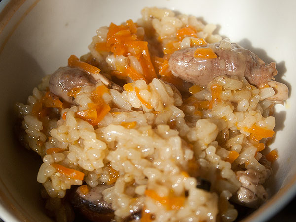 В качестве “мяса” я беру куриные сердечки, или мясо (курицы, индейки, свинины, говядины) порезанное кубиками, или куриные желудки – каждый раз вкус немного разный, но вкусно.